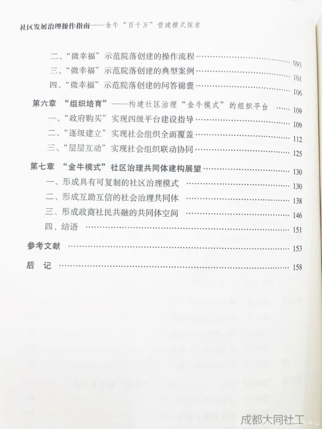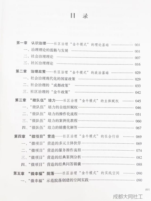 全書由七個章(zhāng)節組成,分别是理(lǐ)論基礎、治理(lǐ)政策、“微隊伍”培力、“微項目”營造、“微幸福”院落創建、組織平台構建、展望。