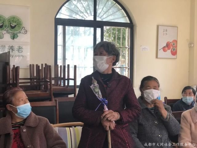 活動伊始,社工帶領服務對象們“擊鼓傳花”,在溫馨音樂(yuè)和(hé)自(zì)我介紹中,大家逐漸熟絡起來,“我叫XX,來自(zì)白雲村3組,今年(nián)62歲了,祝大家婦女節快樂(yuè)”。