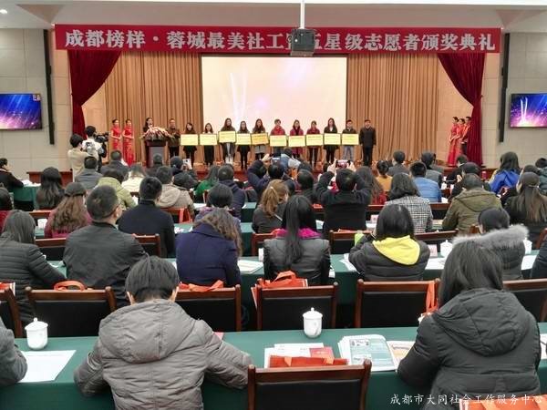 四川日報網消息(記者 郝勇 邵明亮(liàng)文/圖) 3月16日,在第11個“國際社工日”宣傳周到來之際,成都市民政局、成都市文明辦舉行了“成都榜樣·蓉城最美社工暨五星級志願者頒獎典禮”儀式。10名蓉城最美社工,十強社工機構、十佳社工項目的(de)實施主體和(hé)10名五星級志願者獲得表彰。