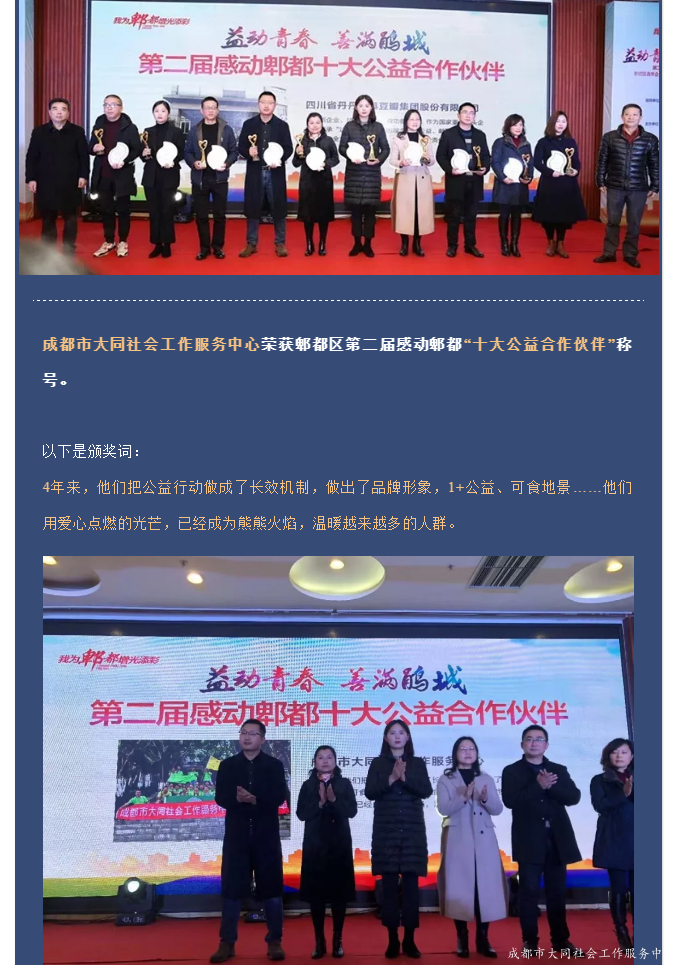 喜報 | 成都大同社工榮獲“十大公益合作夥伴”!