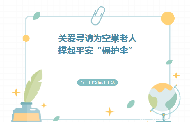 關愛尋訪 為(wèi) 空巢老人 撐起平安保護傘 營門口街道(dào)社工站 空巢老人,一(yī)般是指子(zǐ)女離(lí)家後的(de)中老年(nián)人。随着社會老齡化程度的(de)加深,空巢老人越來越多,...詳細>>